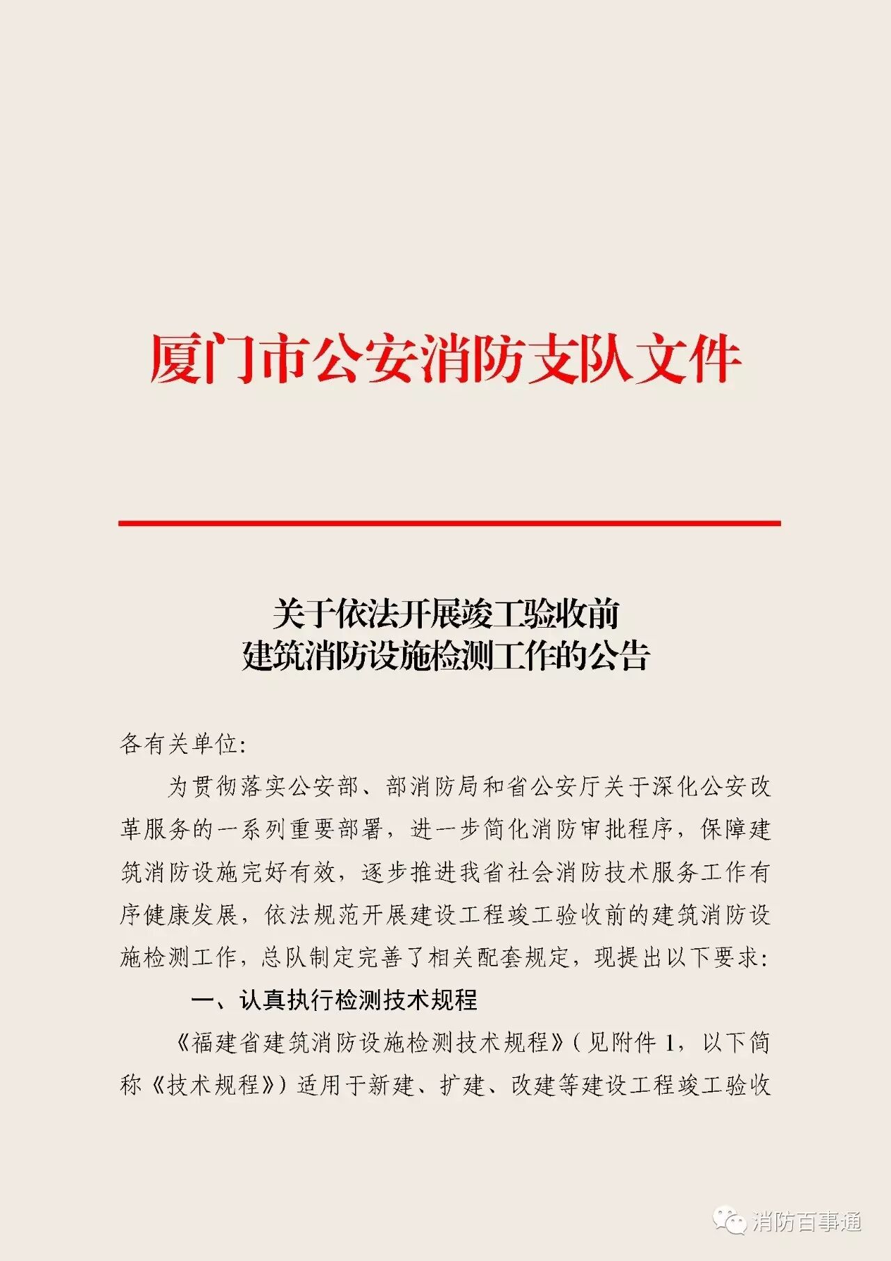 附:關于依法開展竣工驗收前建筑消防設施檢測工作的公告